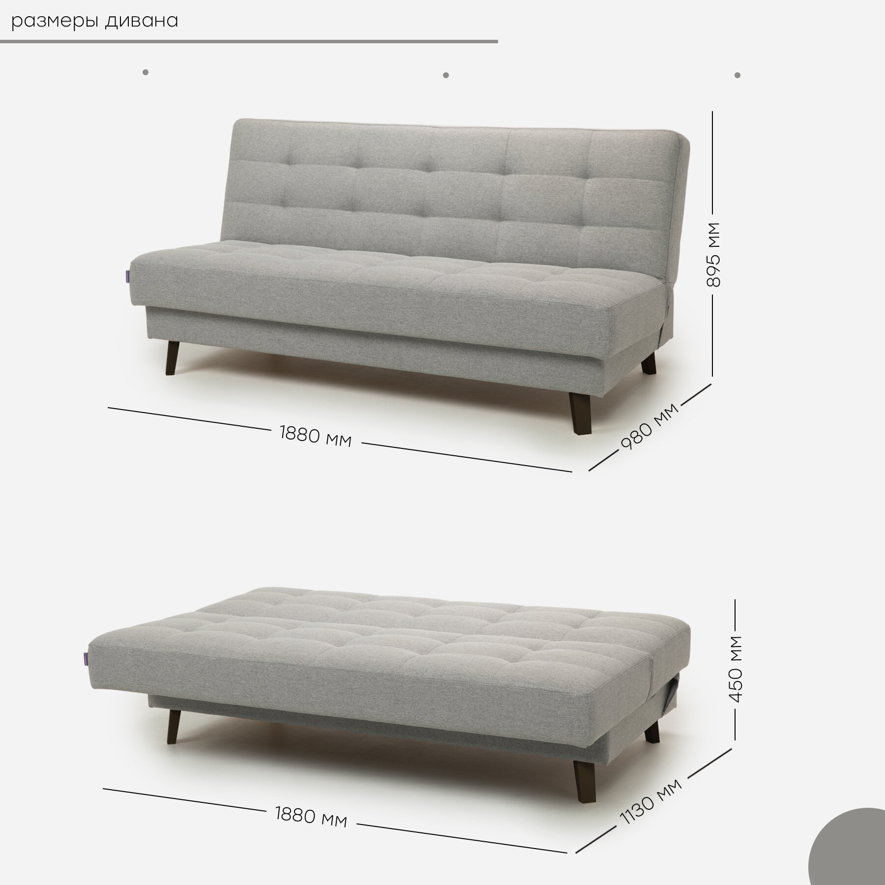 Диван мягкий прямой, механизм книжка Астерия Лайт, 1880х980х895, цвет Серый Мебельная Фабрика Аврора информация: