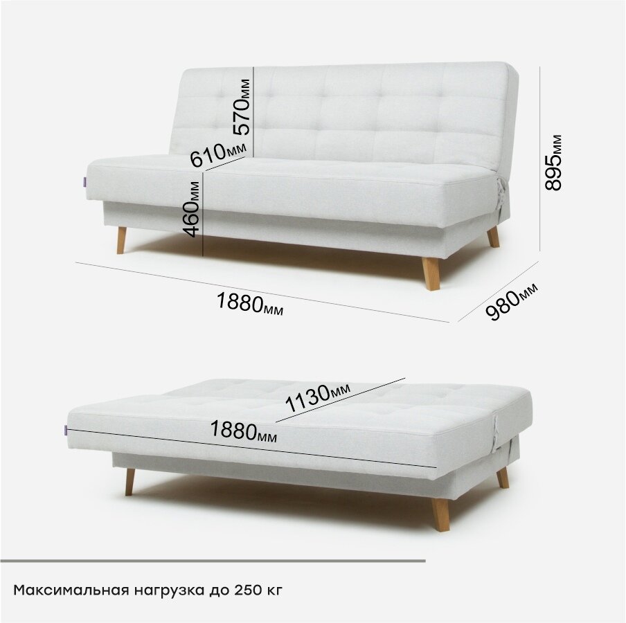 Диван кровать Астерия Лайт механизм книжка, 1880х980х895, цвет светло-серый, Мебельная Фабрика Аврора информация: