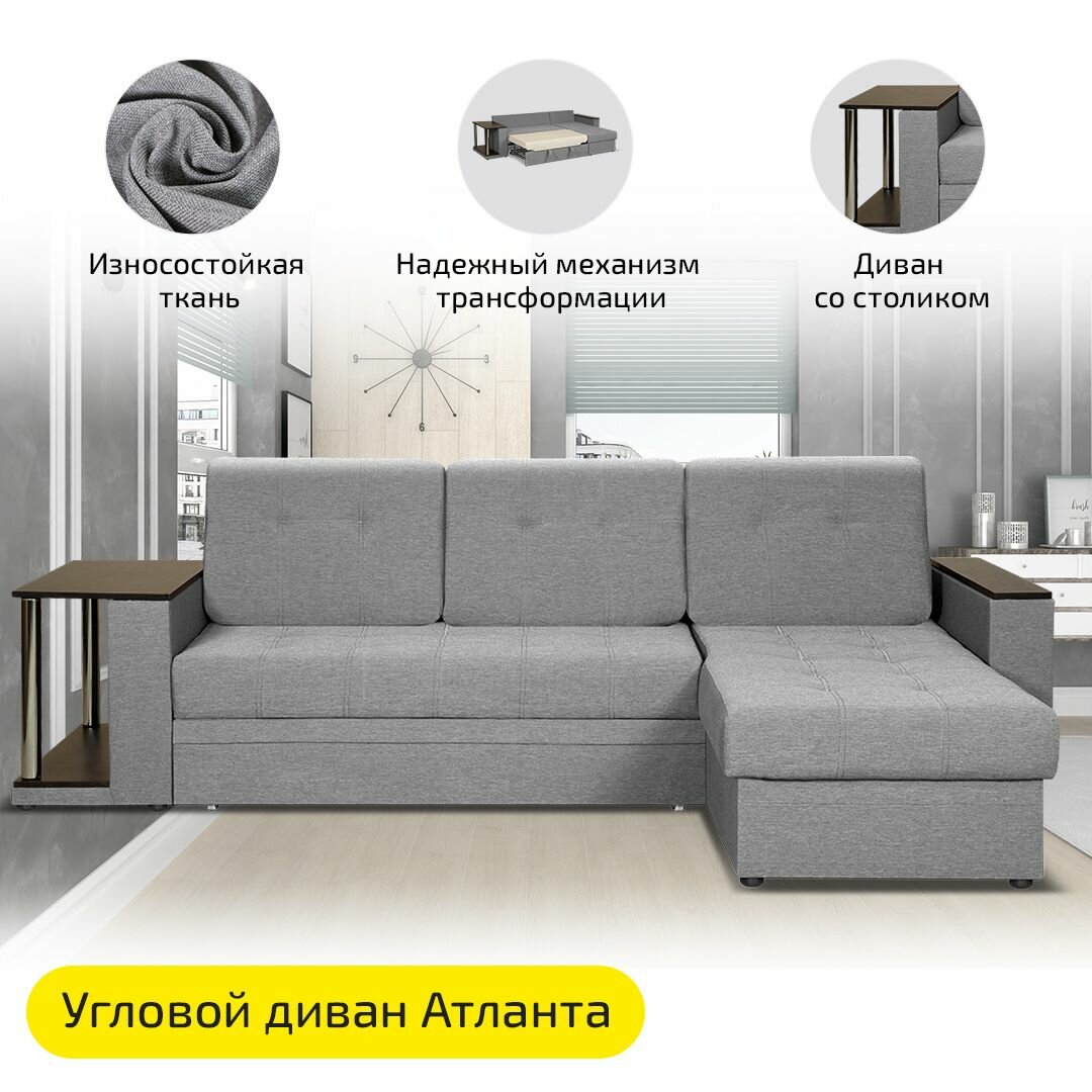 10 цен на Угловой диван AH!DIVAN (АхДиван) Атланта с полкой, 263x162х72 см, раскладной диван-кровать, механизм дельфин, пружинный блок Bonnel, серый рогожка