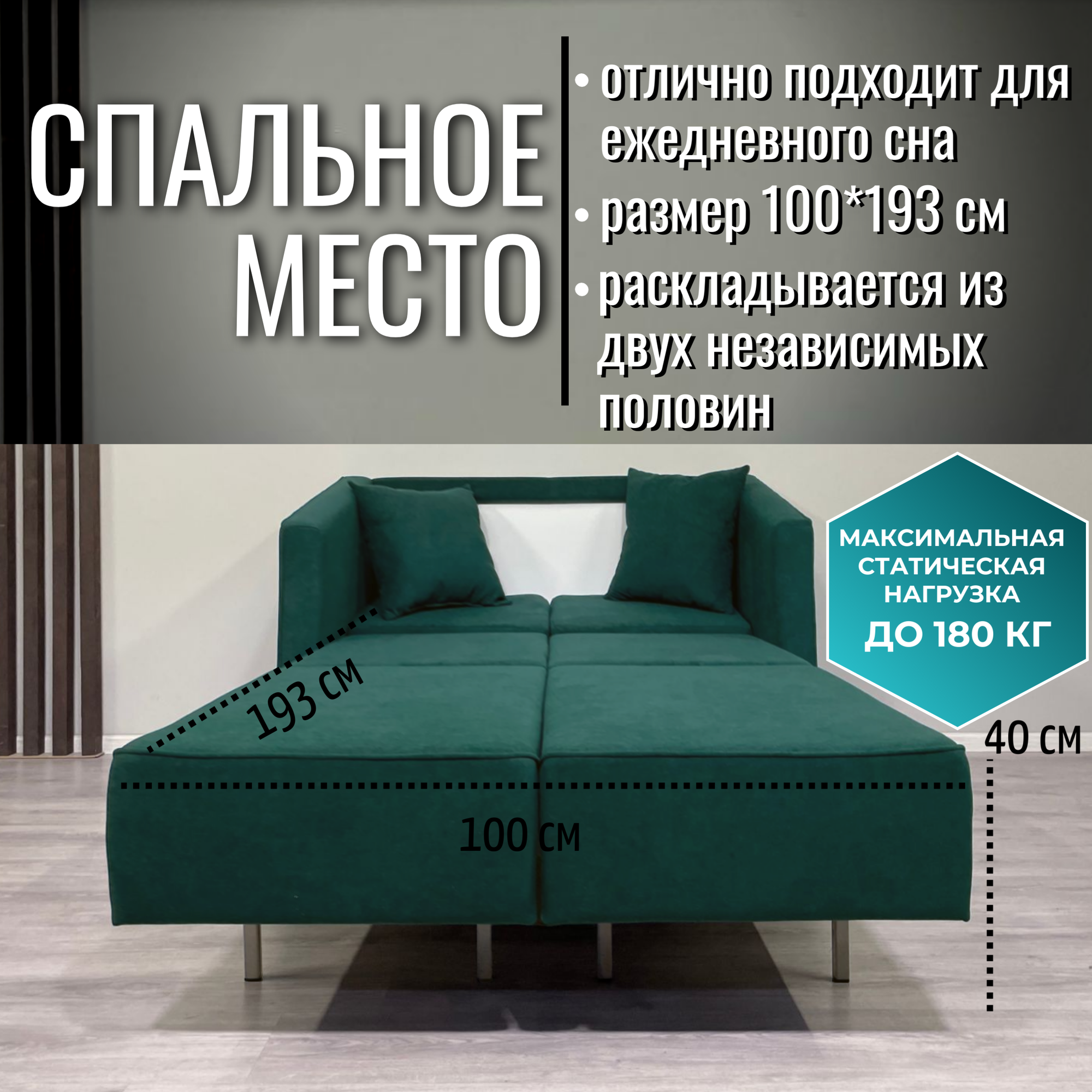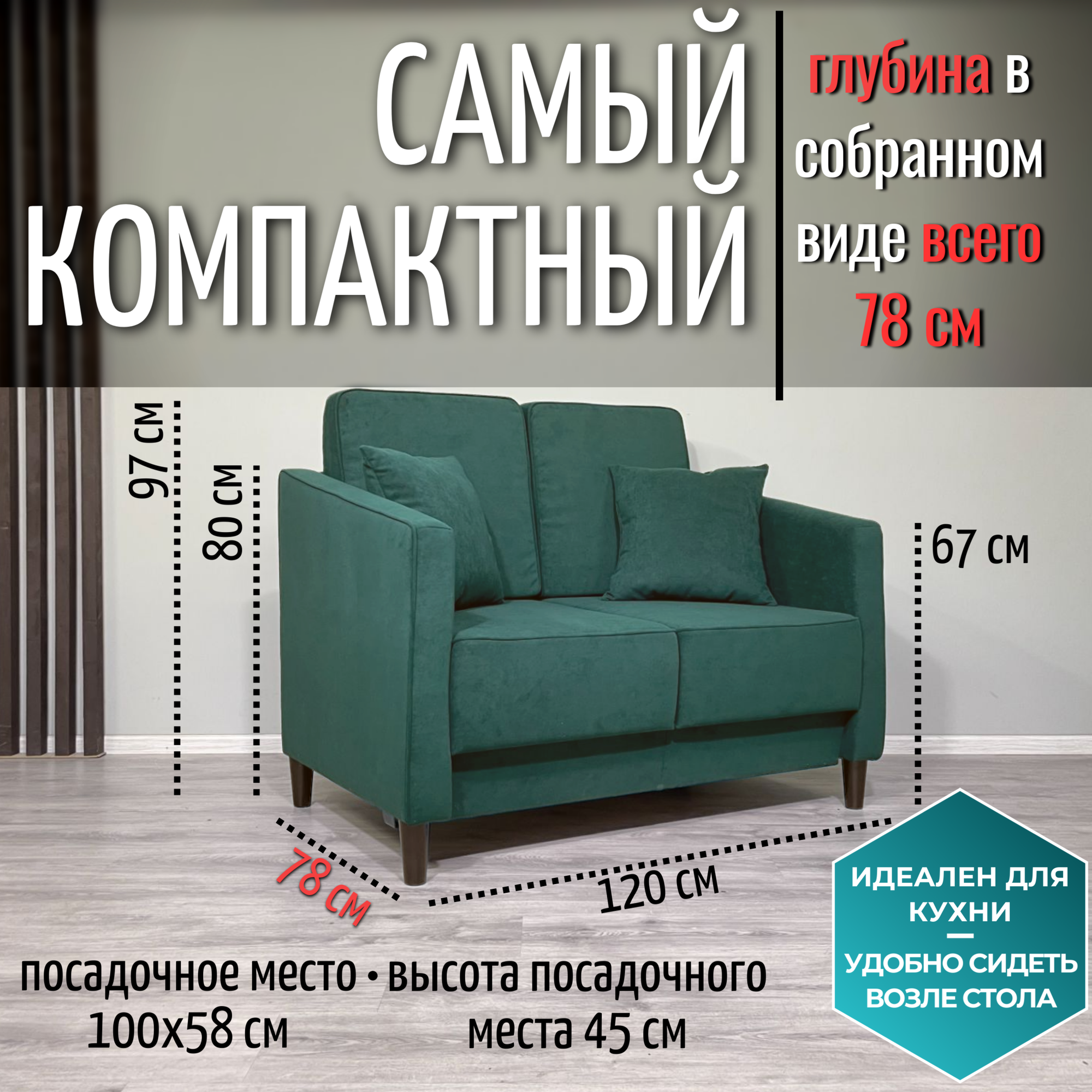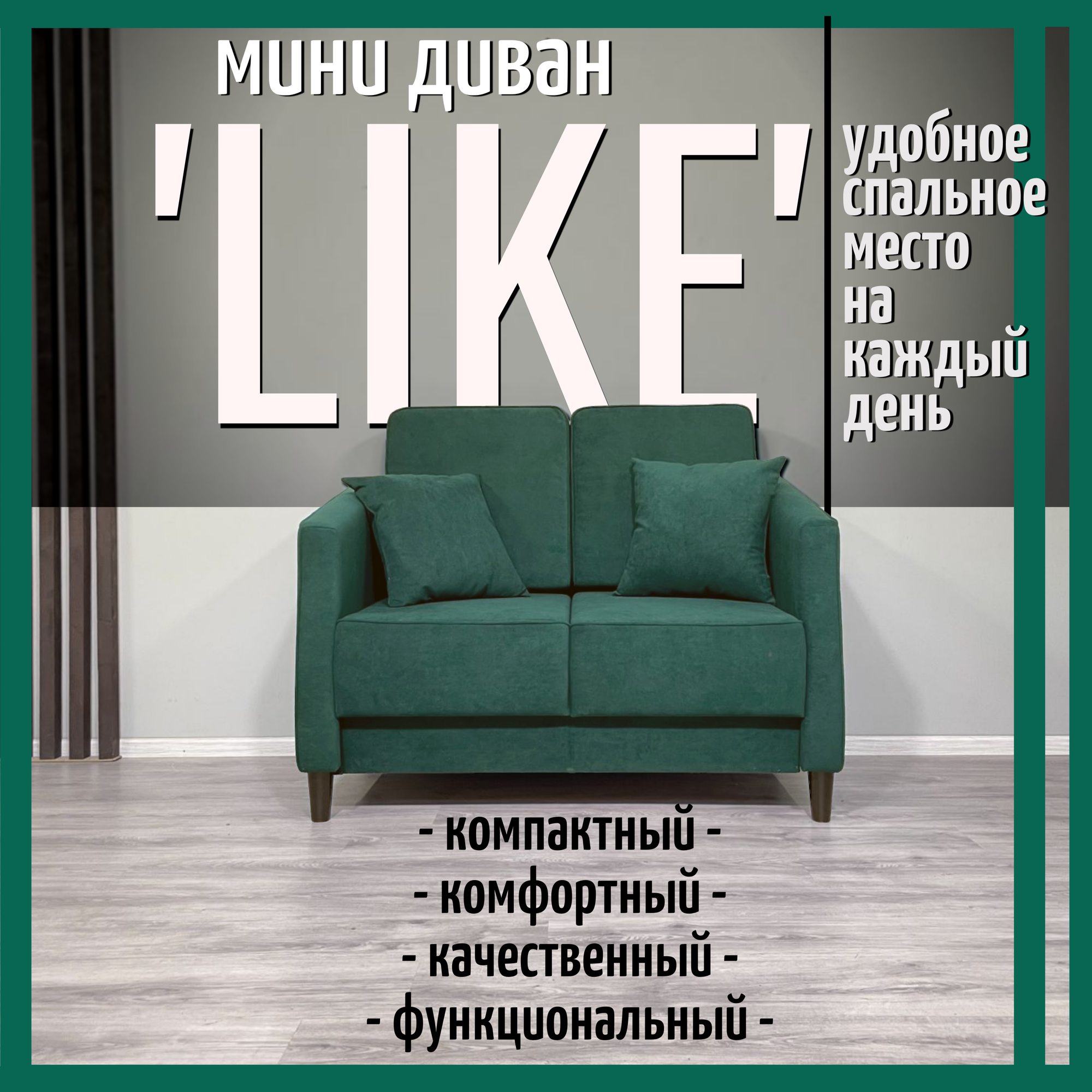 Мини диван раскладной Like 120*78см зеленый велюр информация: