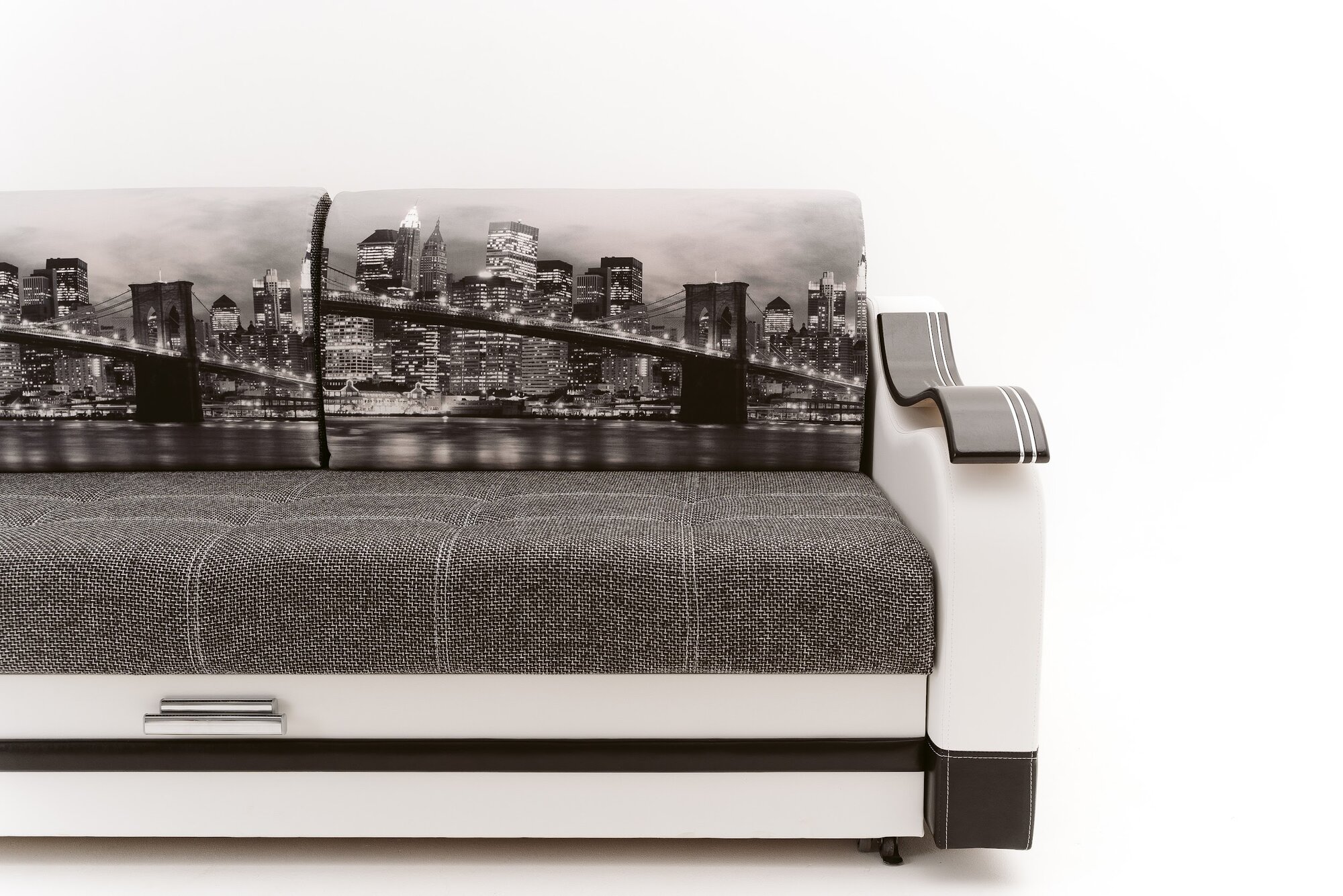 Диван-кровать аккордеон, компактный спальное место 120х200, серый / венге, матрас ППУ, габарит 175 см со столиком и ящиком для белья