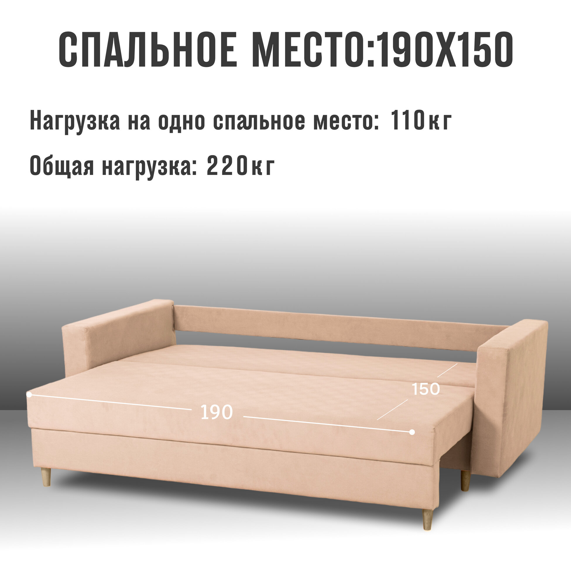Отзывы на Раскладной диван кровать Ванкувер прямой, механизм еврокнижка, 220х96х85 см, бежевый, диванчик на ножках с ящиком для хранения