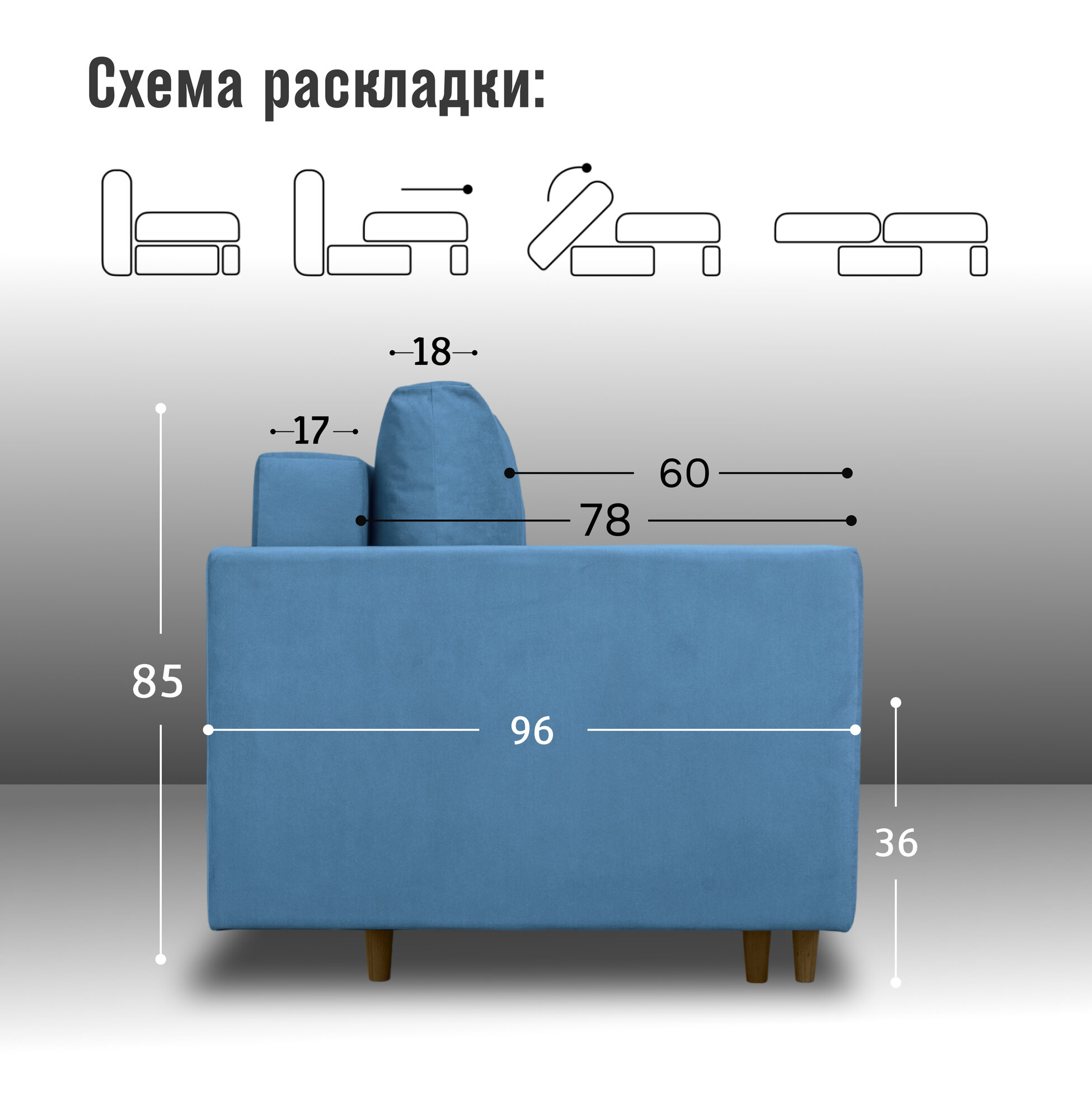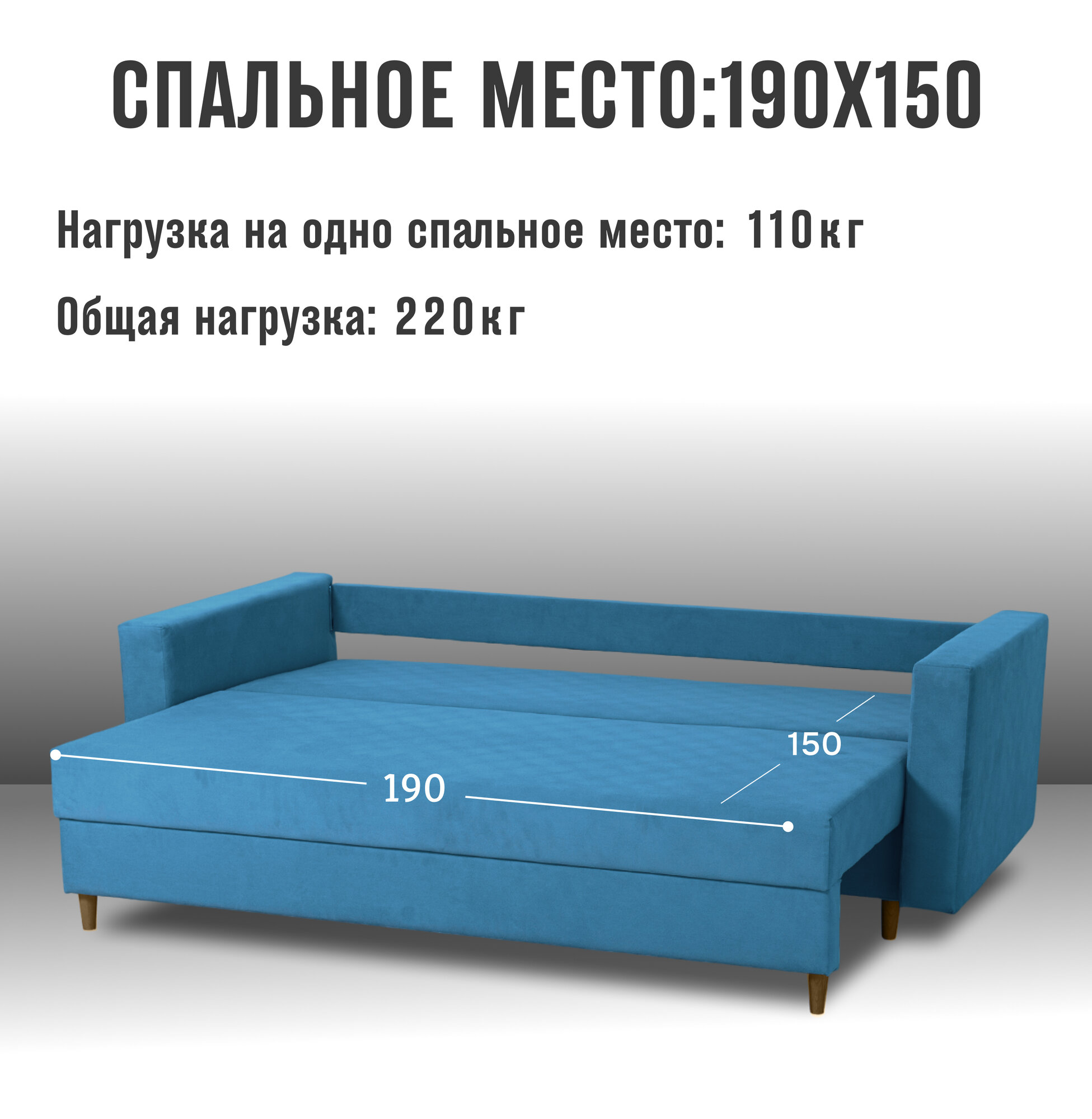 Отзывы на Раскладной диван кровать Ванкувер прямой, механизм еврокнижка, 220х96х85 см, синий, диванчик на ножках с ящиком для хранения