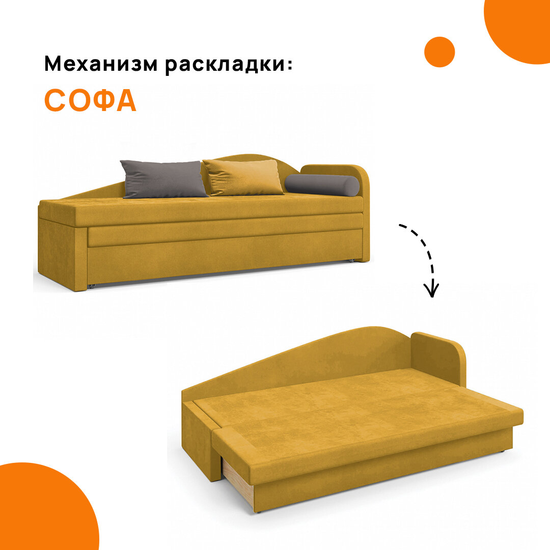 Диван-кушетка Гриф, левый, велюр, желтый, 200х73х80 см, MebelVia 24 590 ₽