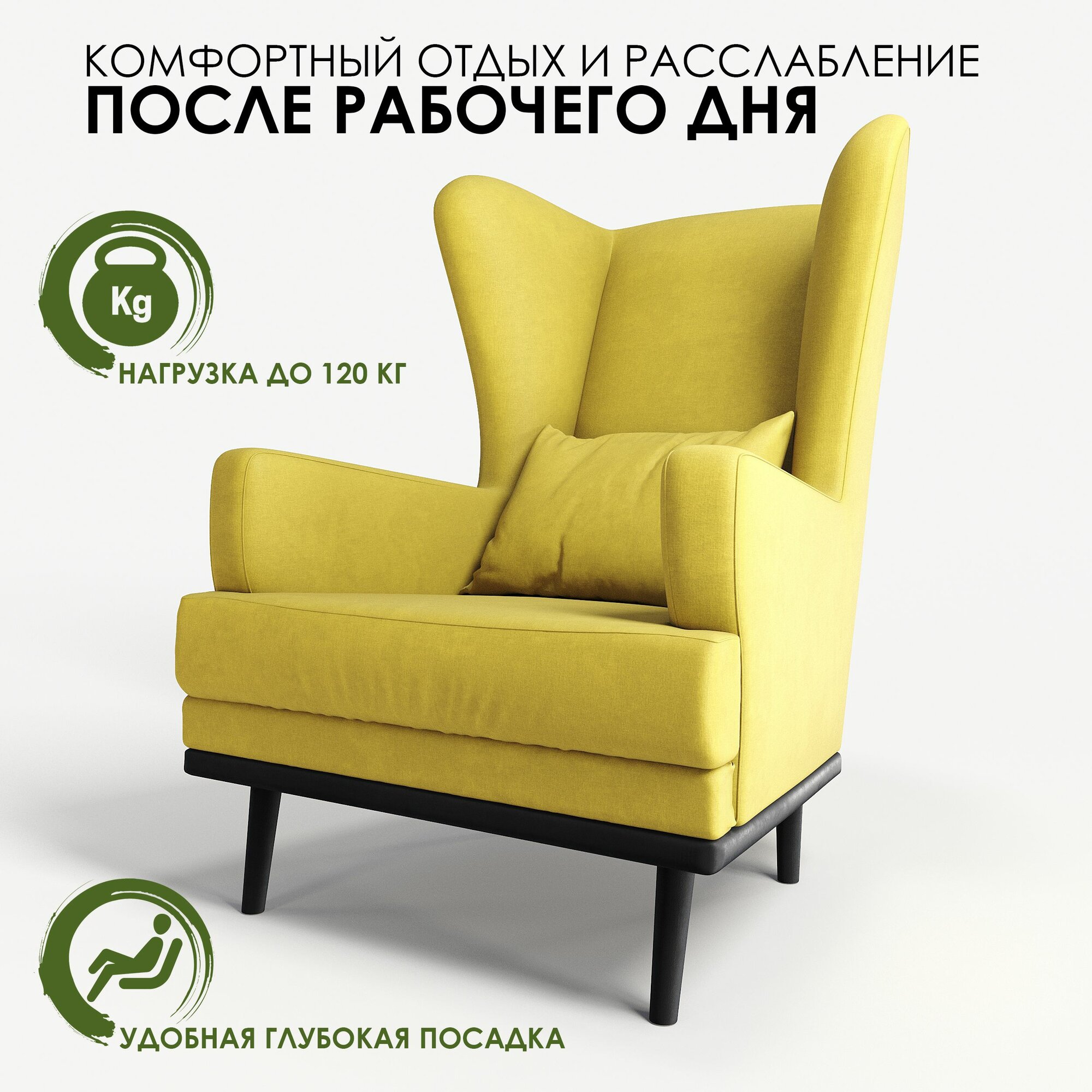Кресло мягкое с ушами Фантазёр D-6 (желтый) на высоких ножках, для отдыха и чтения книг. В гостиную, балкон, спальню и переговорную комнату. информация: