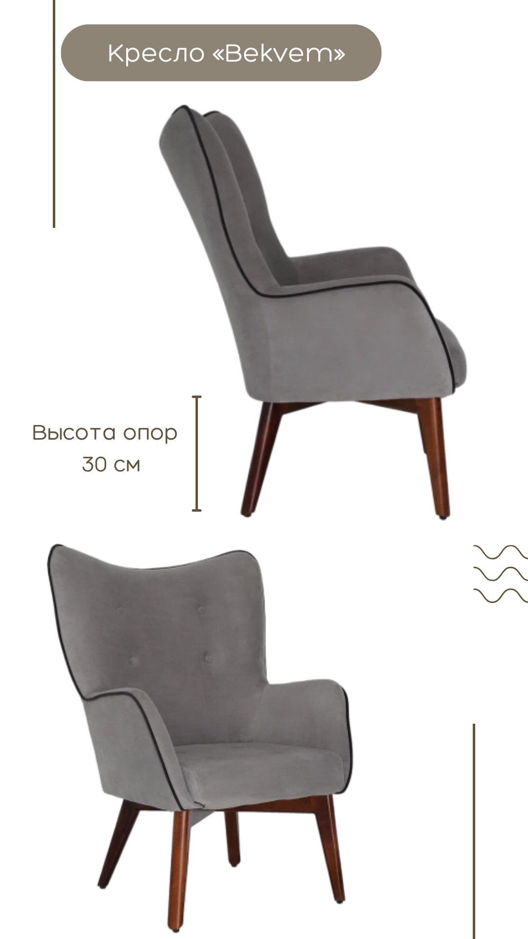 Кресло "Bekvem", опоры орех, ткань Ultra dove, серое информация: