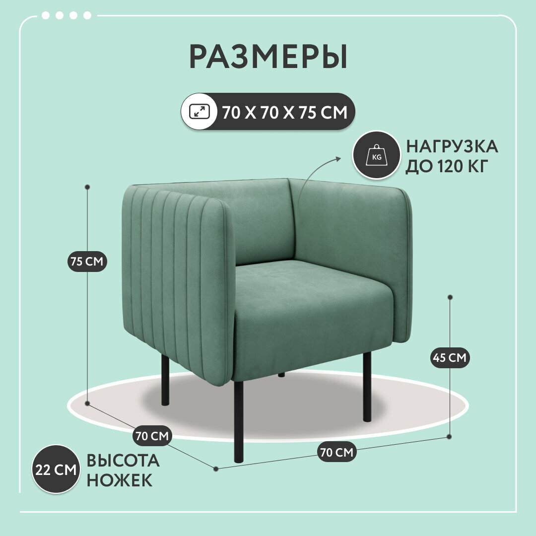 Кресло мягкое для отдыха D1 Рио мятное / офисное, на кухню, в гостиную, 70x70x75 17 539 ₽