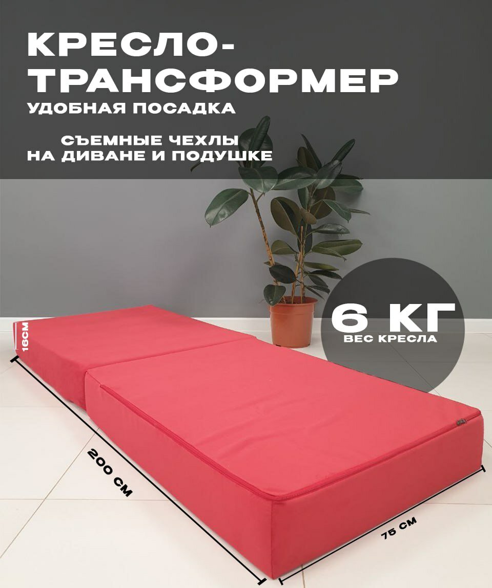 Бескаркасное раскладное кресло- кровать, акробат red информация: