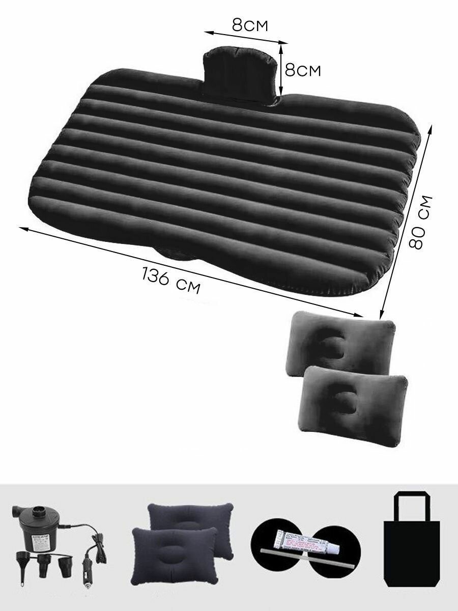Автомобильный надувной матрас на заднее сиденье в сумке, черный информация: