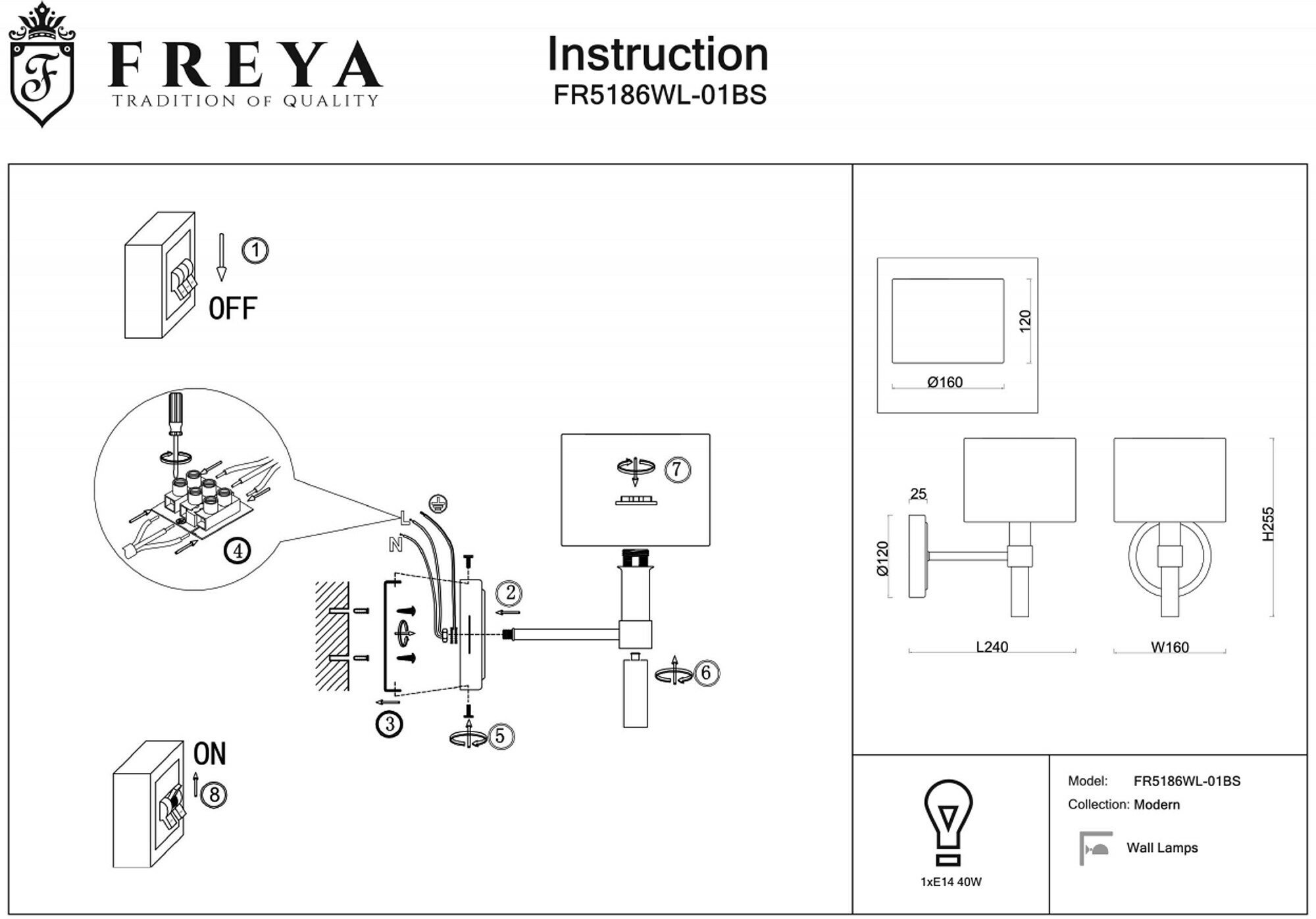 Настенный светильник (бра) Freya Lino FR5186WL-01BS информация: