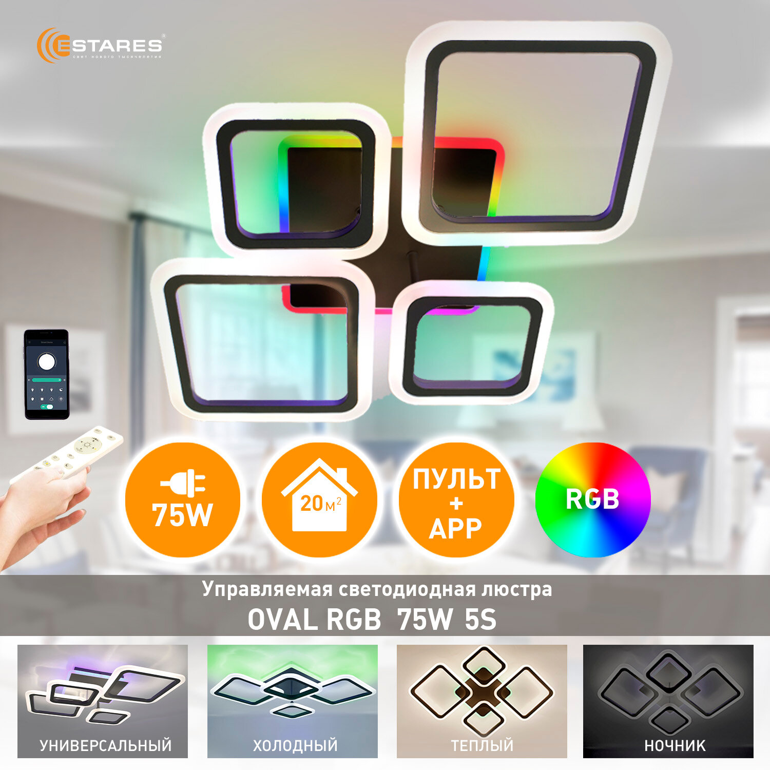 Отзывы на Управляемая светодиодная потолочная люстра с пультом и управлением со смартфона Estares OVAL RGB 75Вт УУО00004821