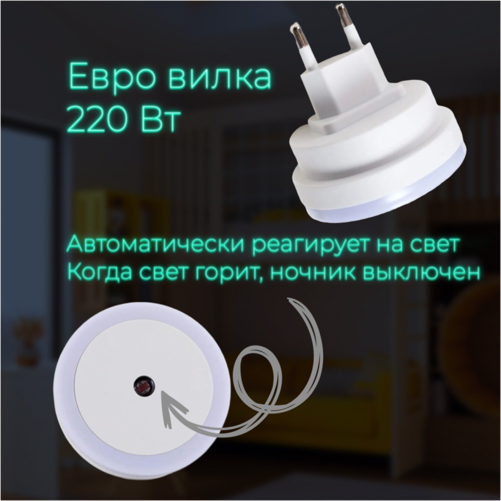 Ночник в розетку с датчиком освещенности , 2шт, светодиодный светильник информация: