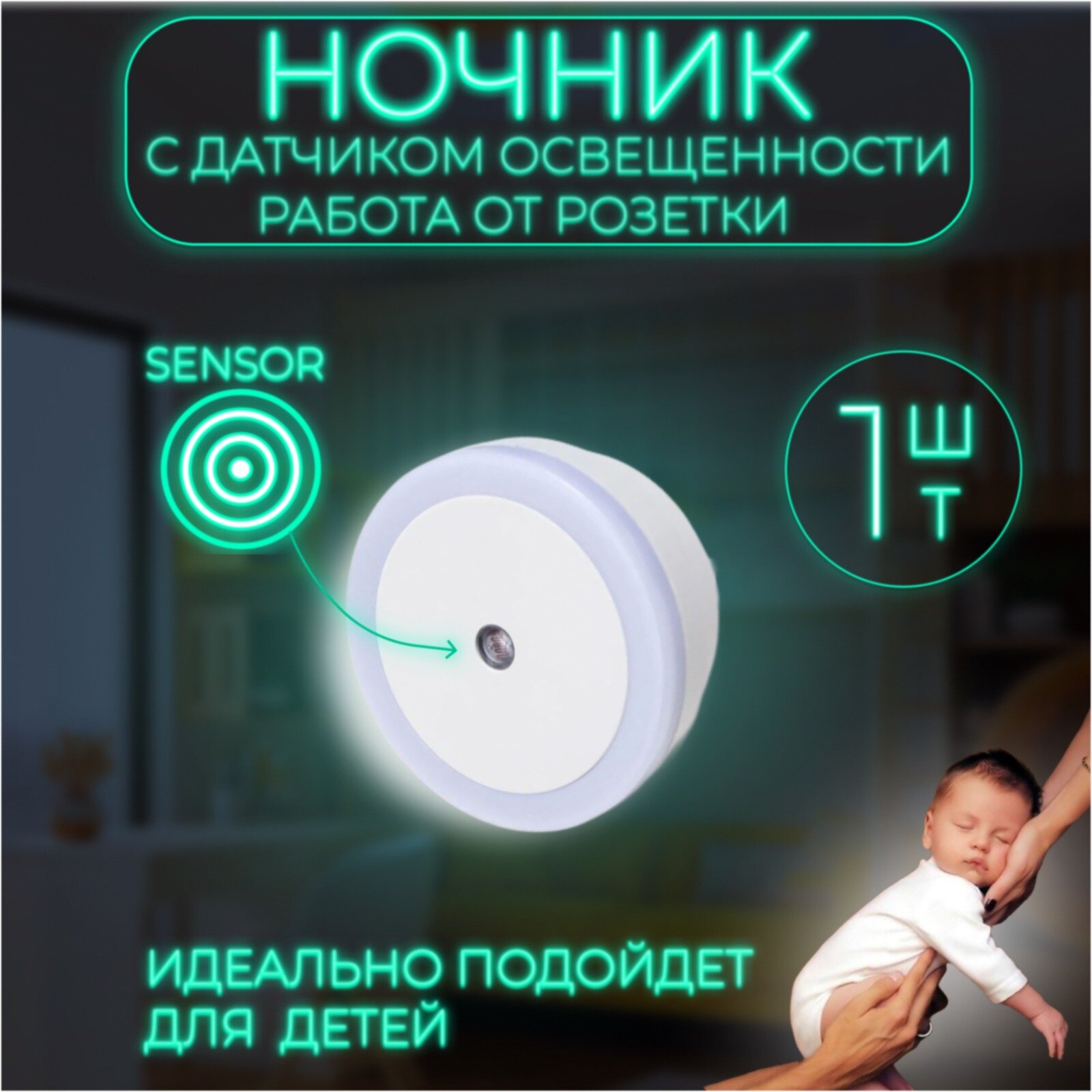 10 цен на Ночник в розетку с датчиком освещенности , 1шт, светодиодный светильник