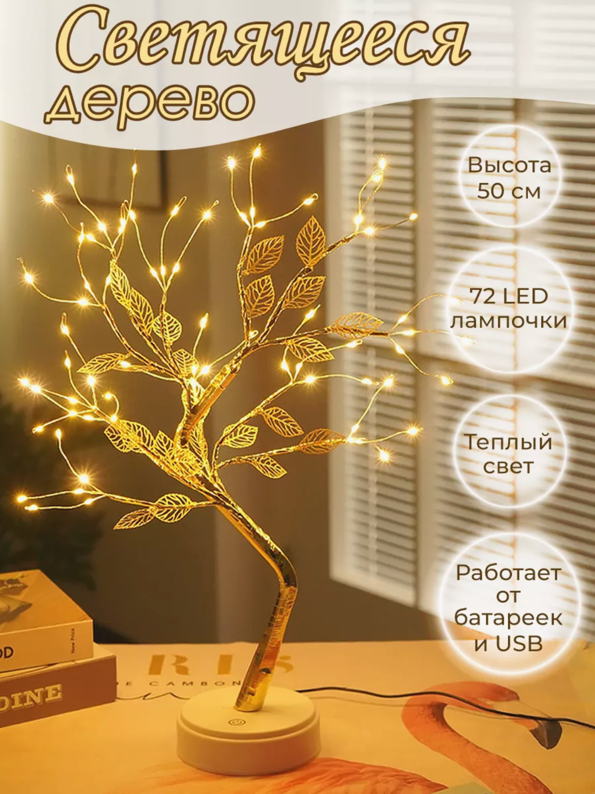 Светильник ночник в виде дерева с Лепестками, теплый свет /VARDA информация: