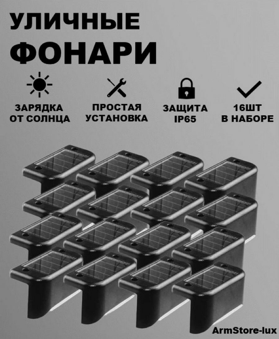 10 цен на Уличный светильник на солнечных батареях черный - 16шт (4 коробки)