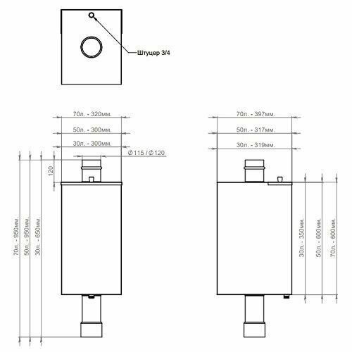 Бак для воды на трубе Онега 70 л. "самовар" из нержавейки для печи в баню (мама-мама) информация: