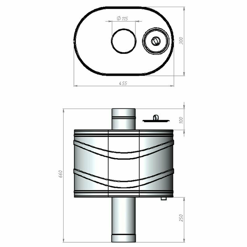 Бак на трубе для печи, 43л, ф.115, AISI 439/0,8мм