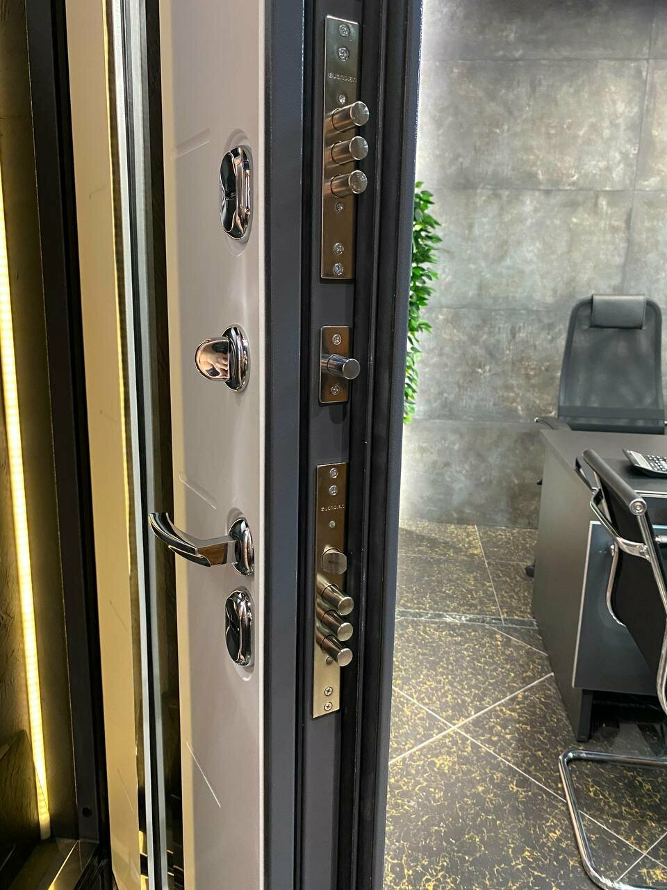 | Дополнительная информация | 3 контура (1 магнитный) уплотнения, терморазрыв -Полиамидный профиль 7 мм по всему периметру полотна и короба двери, замки: Сувальдный Гардиан 3011, Сувальдный Гардиан 3001, Стеклопакет 4-х камерный 81 мм, стекло 4 мм матовое с прозрачными полосками |