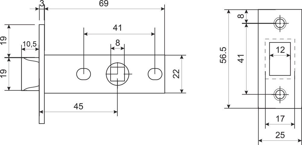 Защелка дверная межкомнатная врезная аллюр АРТ L45-8 AB старая бронза, торцевая планка 25 мм информация: