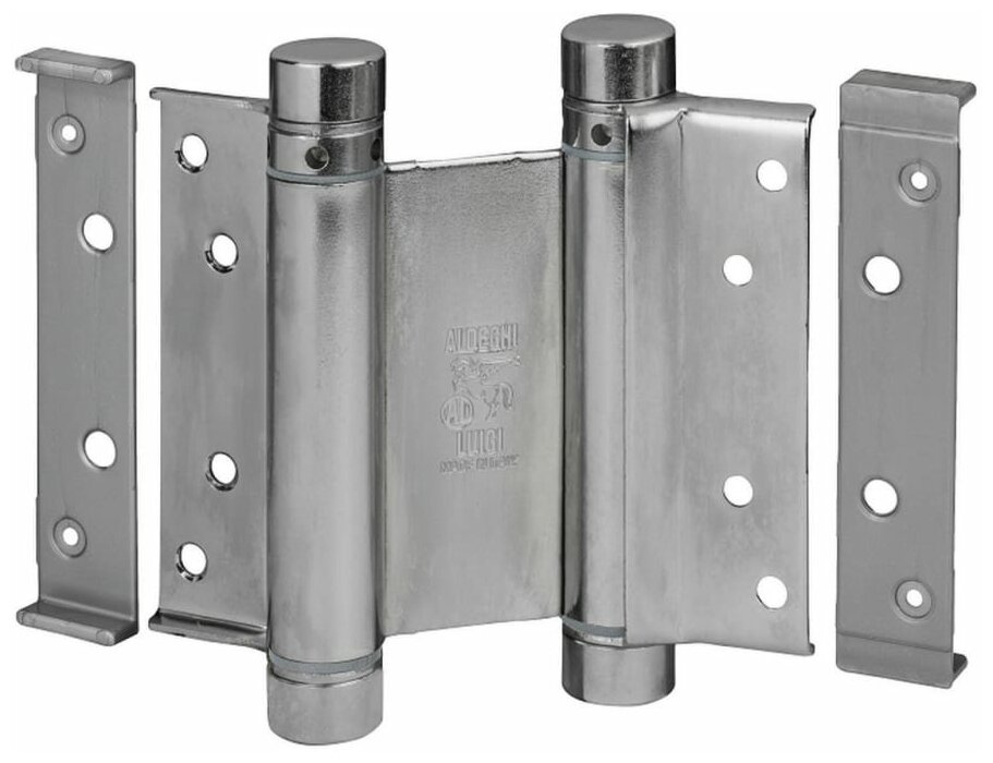 Барная пружинная петля двойного действия ALDEGHI LUIGI SPA 75х34х28 мм, цвет: хром, к-т: 2 шт + ключ с декоративными заглушками 101AC075B2