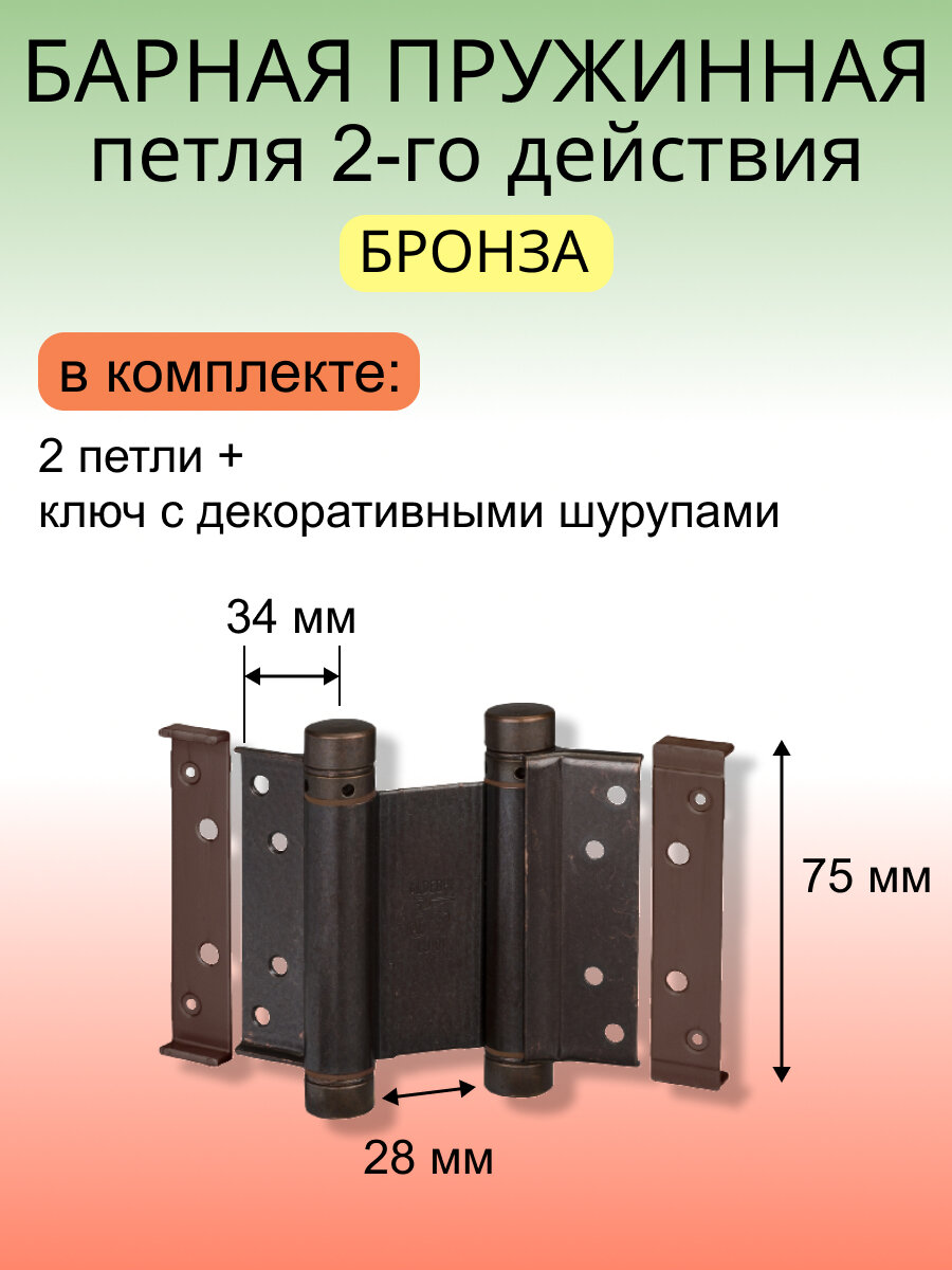10 цен на Барная пружинная петля двойного действия ALDEGHI LUIGI S.p.A. 75х34х28 мм, цвет: бронза, к-т: 2 шт + ключ с декоративными заглушками