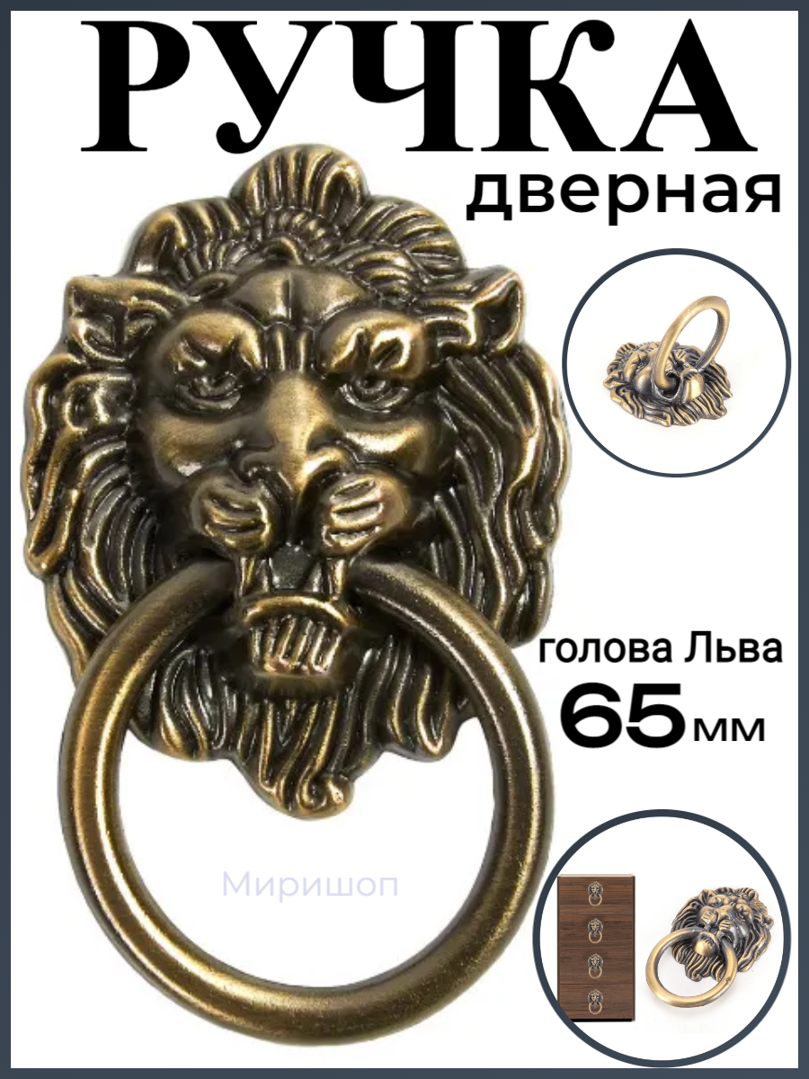 Ручка дверная кольцо Лев 6.5 см (высота головы), бронзовый информация: