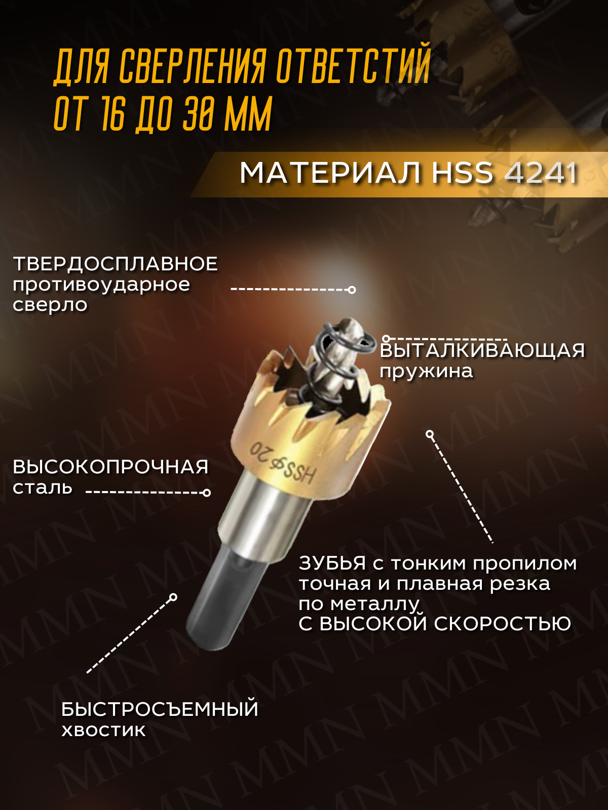 Набор коронок по металлу 16 /18 /20 /25 /30 мм информация: