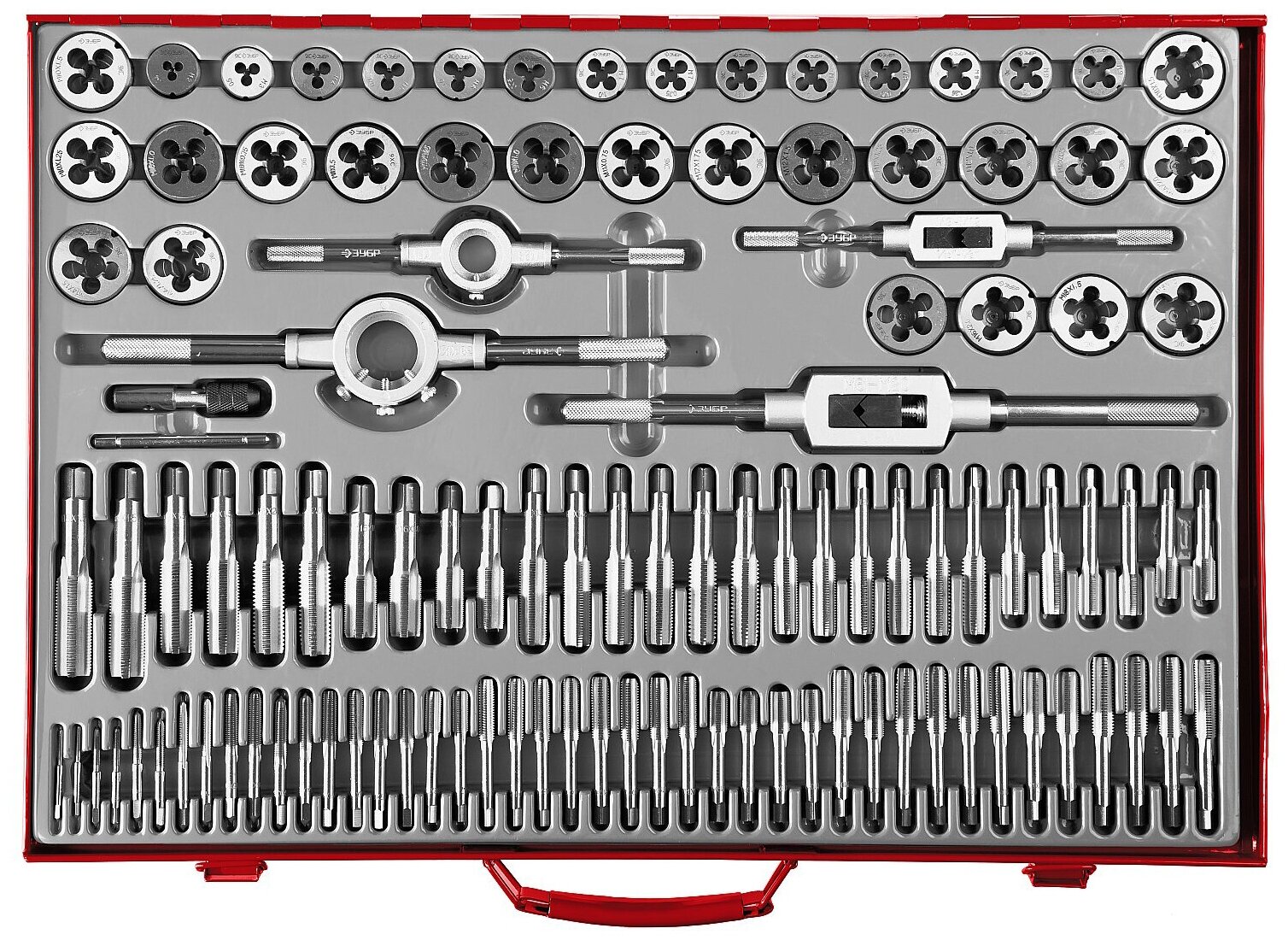 10 цен на Набор метчиков и плашек мастер, сталь 9ХС, 110 предметов ЗУБР 28119-H110_z01