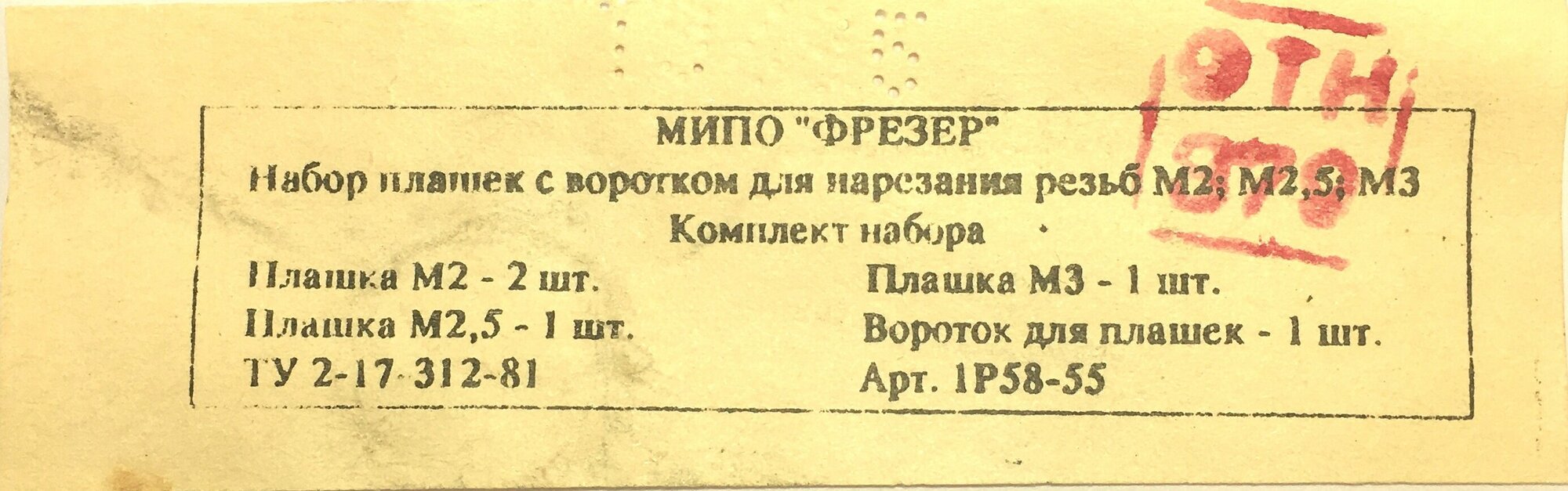 Набор плашек с воротком М2/М2,5/М3 СССР информация: