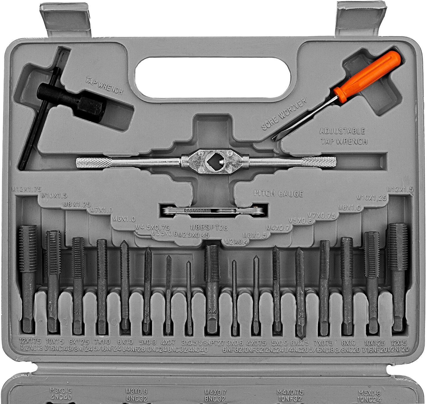 10 цен на Набор метчиков и плашек М3-М12, плашко-метчикодержатель, 40 предметов, пластиковый бокс Sparta