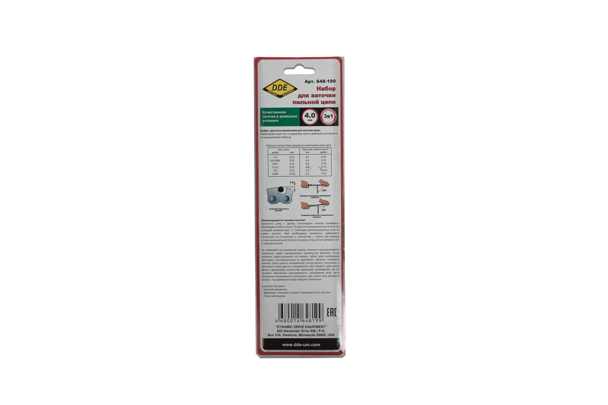 Державка с напильником DDE 4,0 мм (ручка, + напильник 4,0 мм, + планка) информация: