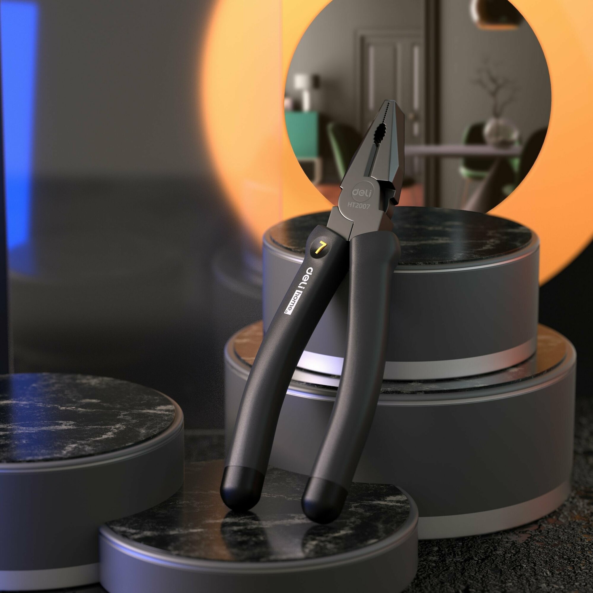 Комбинированные плоскогубцы "Home Series Black" Deli HT2007 180мм (эксклюзивный дизайн, рукоятка софттач пластик, подарочная упаковка) информация: