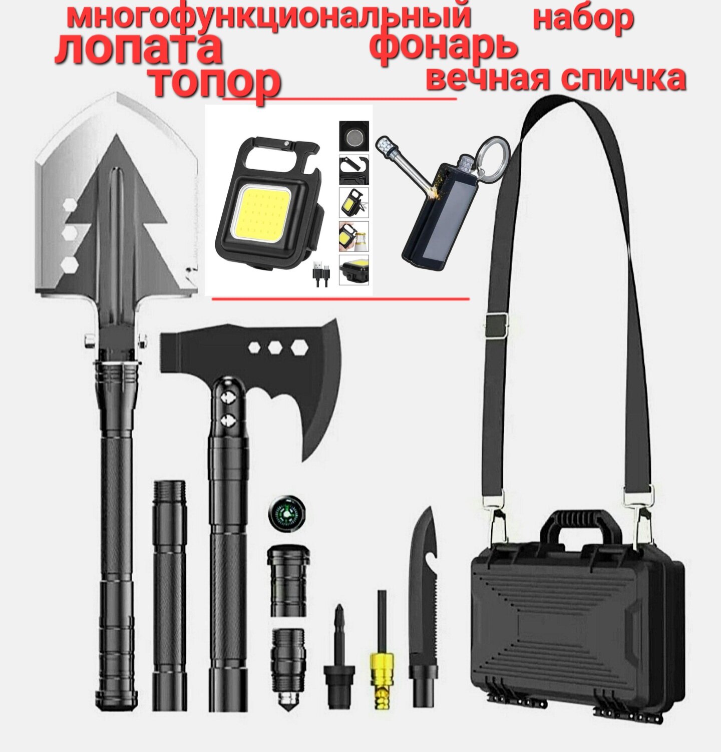 10 цен на Многофункциональный туристический набор : Лопата , топор , фонарь , вечная спичка