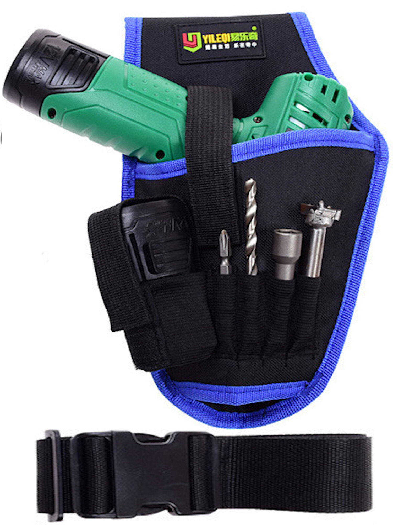 Пояс для инструмента, 4 кармана+ кобура для шуруповёрта + большая сумка на липучке, высокопрочная ткань Оксфорд 600.
