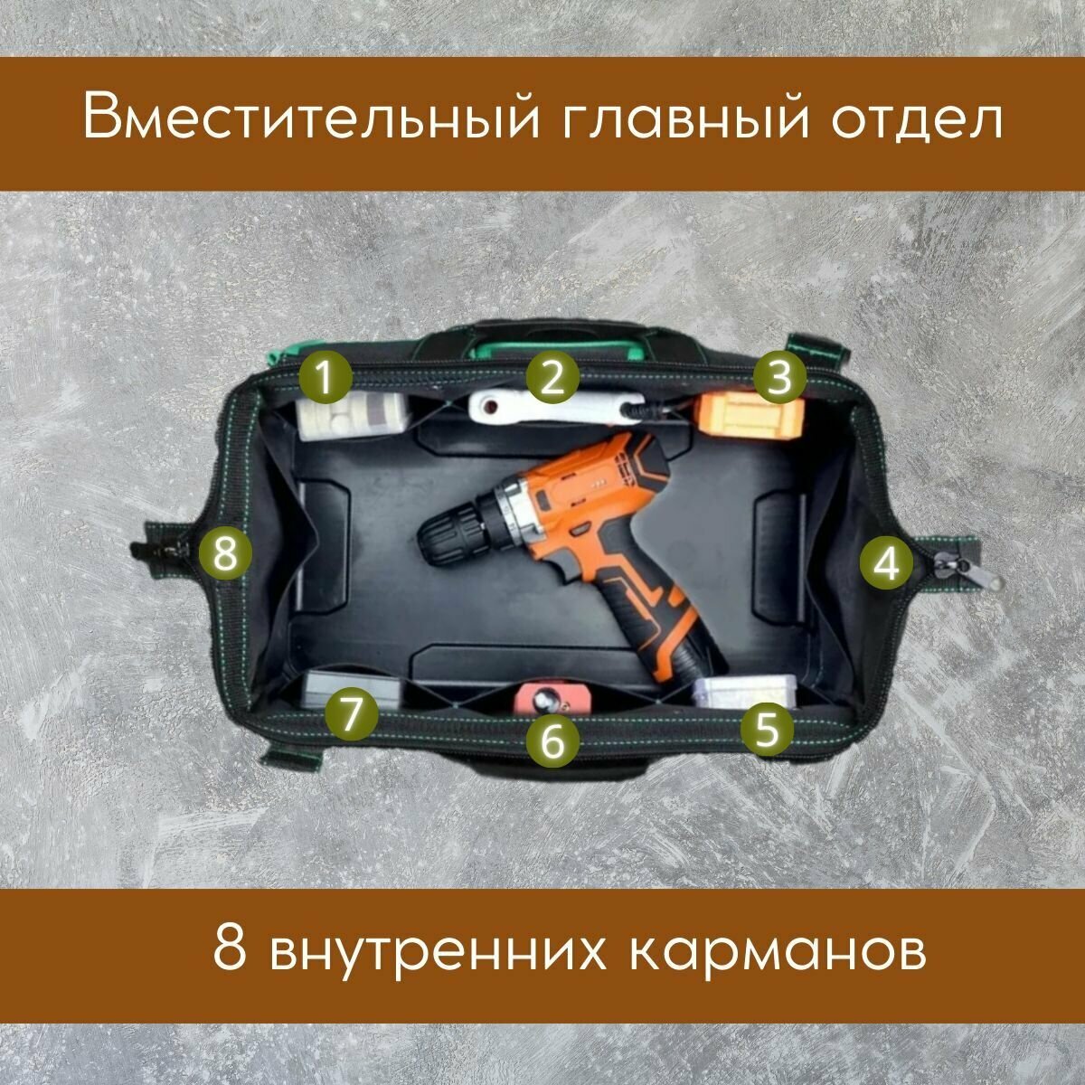 Сумка органайзер строительная для инструментов с ремнем, жесткое дно информация: