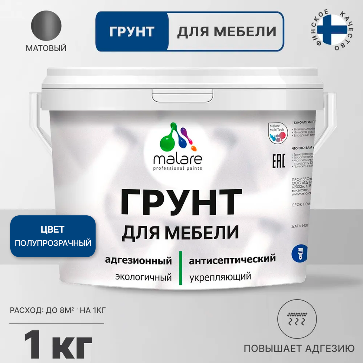 Грунт для мебели Malare акриловый адгезионный укрепляющий быстросохнущий без запаха, полупрозрачный, 1 кг. 729 ₽