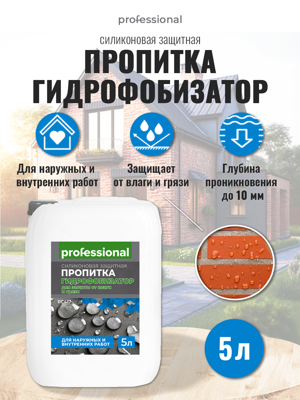 10 цен на Гидрофобизатор PROFESSIONAL пропитка от влаги и грязи для бетона, для камня на водной основе, 5л