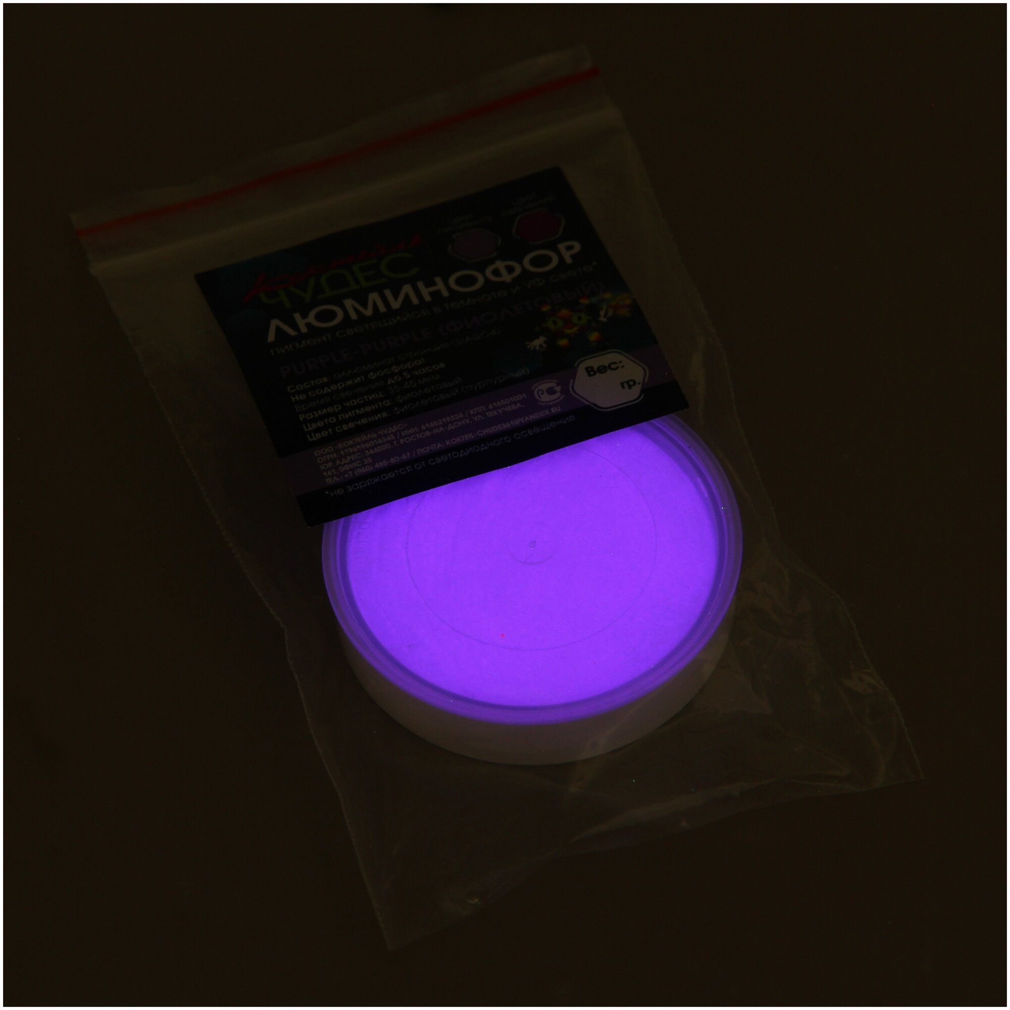 Люминофор фотолюминесцентный пигмент / Коктейль Чудес / 20 г Purple-Purple (Фиолетовый) в баночке порошок светится в темноте для хобби и творчества информация: