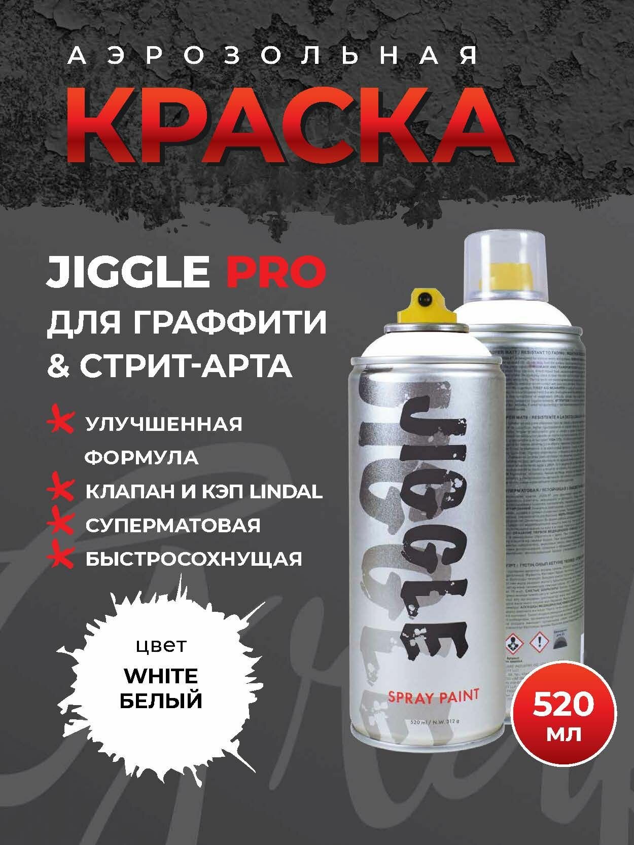 Аэрозольная краска для граффити в баллончике JIGGLE PRO суперматовая, 520 мл, WHITE / Белый информация: