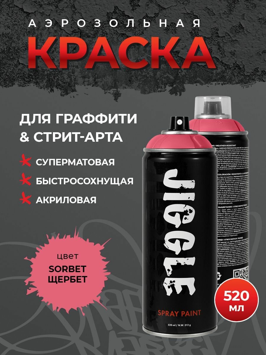Аэрозольная краска для граффити в баллончике JIGGLE суперматовая, 520 мл, SORBET / Шербет информация: