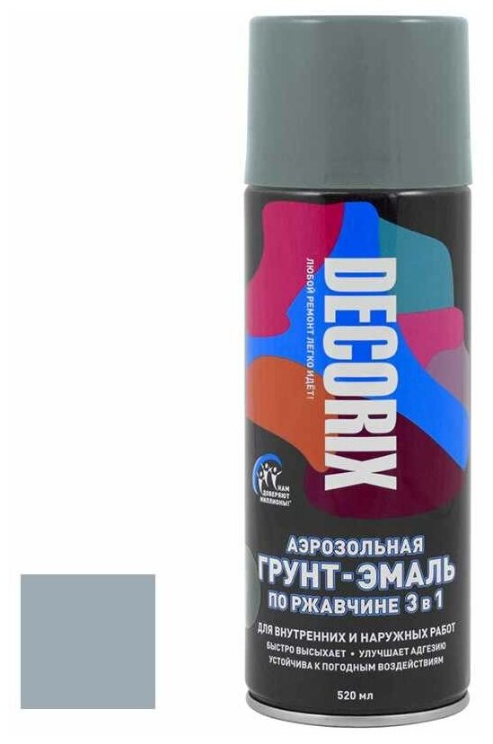 Отзывы на DECORIX 010622DX DECORIX Грунт-эмаь по ржавчине 3 в 1 серый гянцевый 520 м аэрозоь