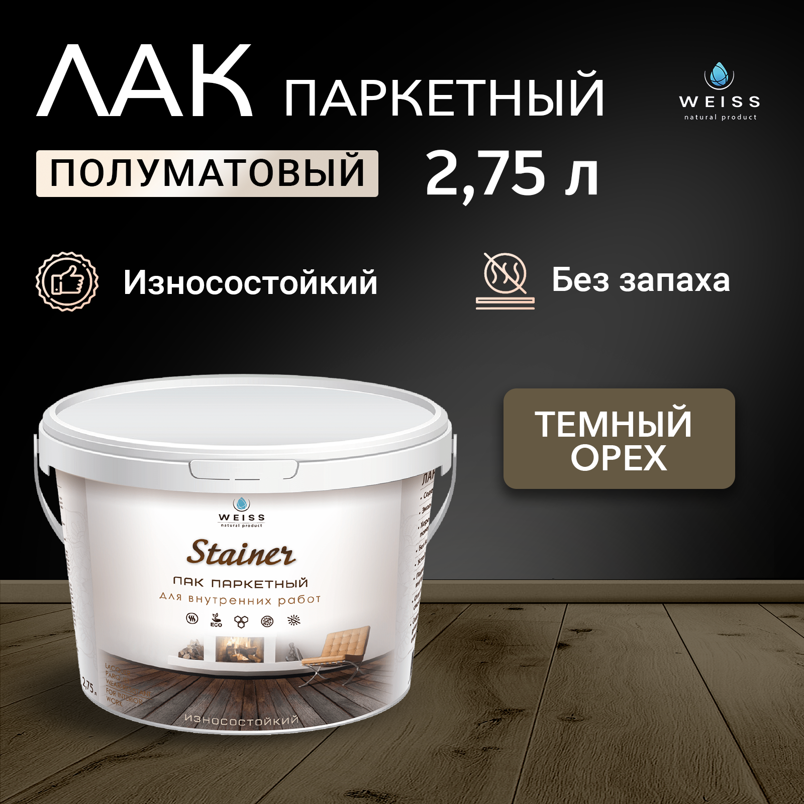Лак WEISS Паркетный полуматовый водорастворимый 2,75л 058 темный орех информация: