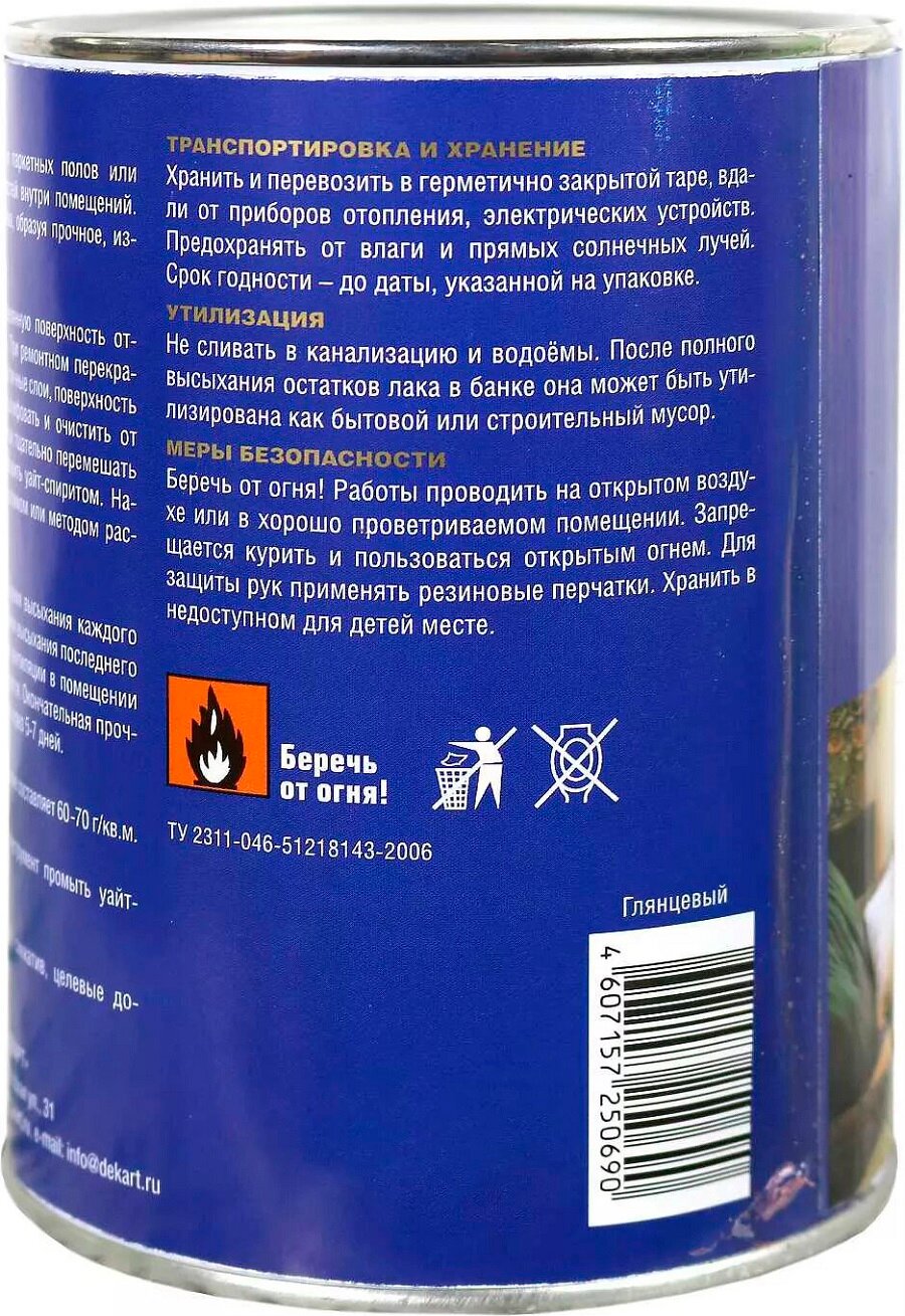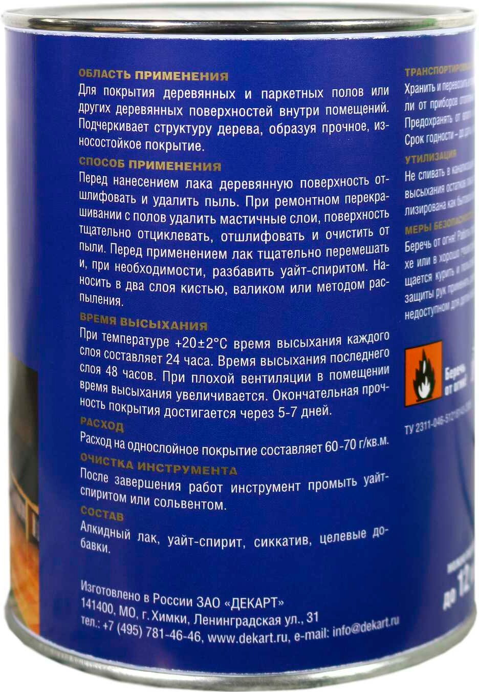 Лак паркетный эксперт ПФ-231М глянцевый 0,8кг информация: