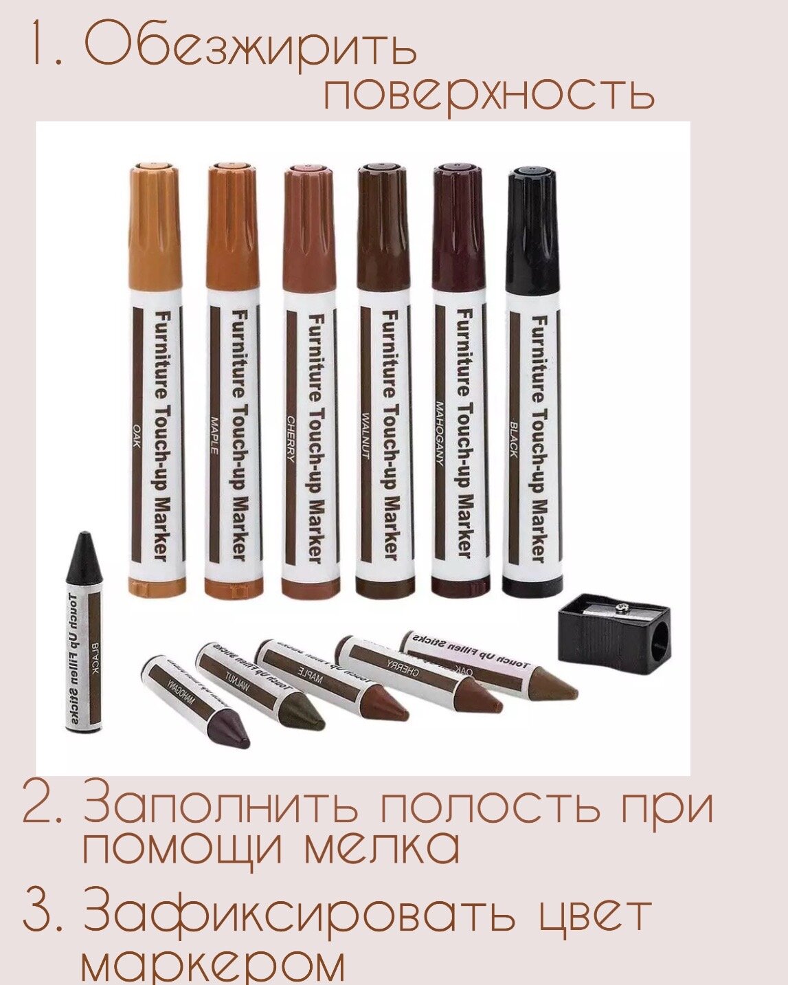 Отзывы на Набор для реставрации и ремонта мебели и ламината, мебельный маркер и воск 6 цветов