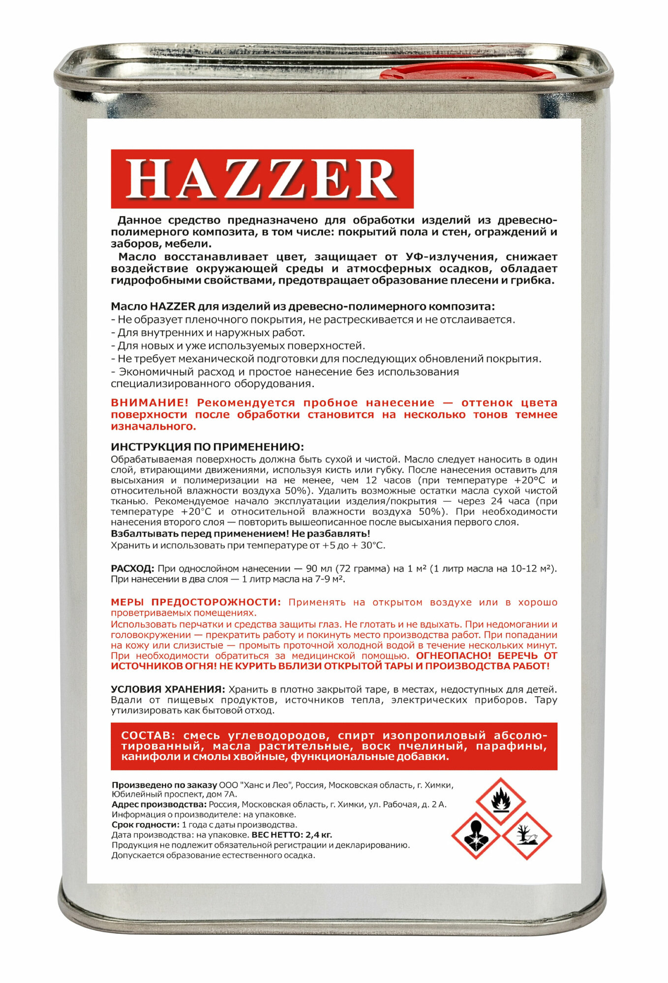 Масло HAZZER для террасной доски, изделий из ДПК (древесно-полимерного композита), 3 литра информация: