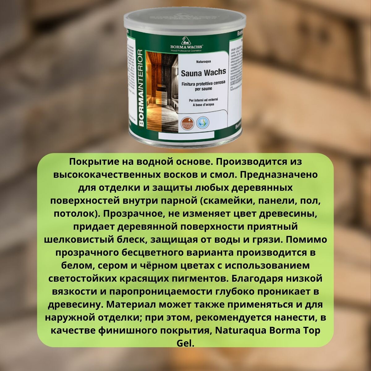 Воск для сауны (парной) Naturaqua Borma Sauna Wachs 750 мл прозрачный NAT3361 информация: