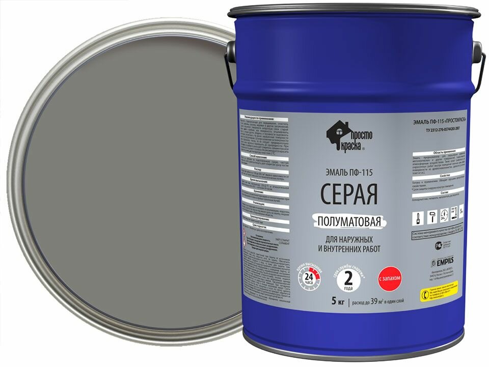 Эмпилс ПростоКраска эмаль ПФ-115 серая (5кг) полуматовая / EMPILS ПростоКраска эмаль ПФ-115 серая (5кг) полуматовая
