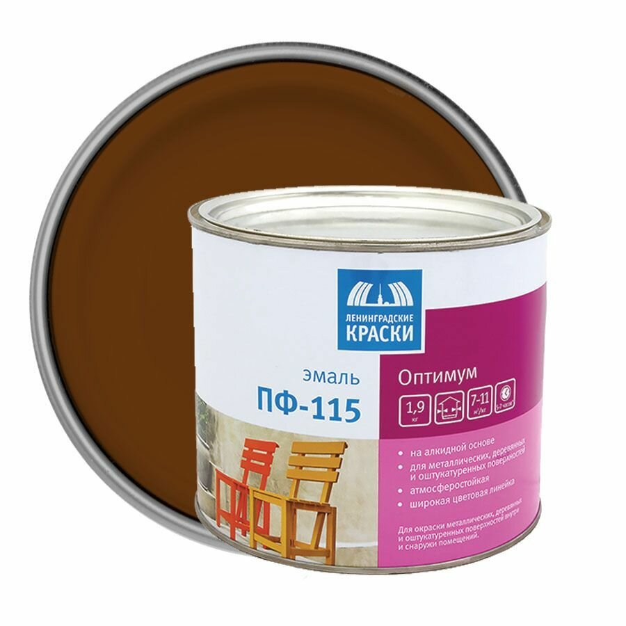Эмаль ПФ-115 Ленинградские краски Оптимум, алкидная, глянцевая, 1,9 кг, шоколадная информация: