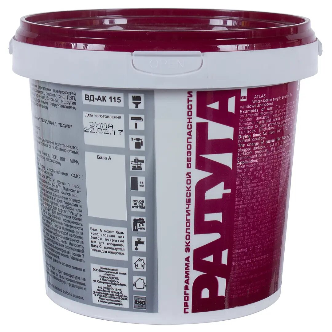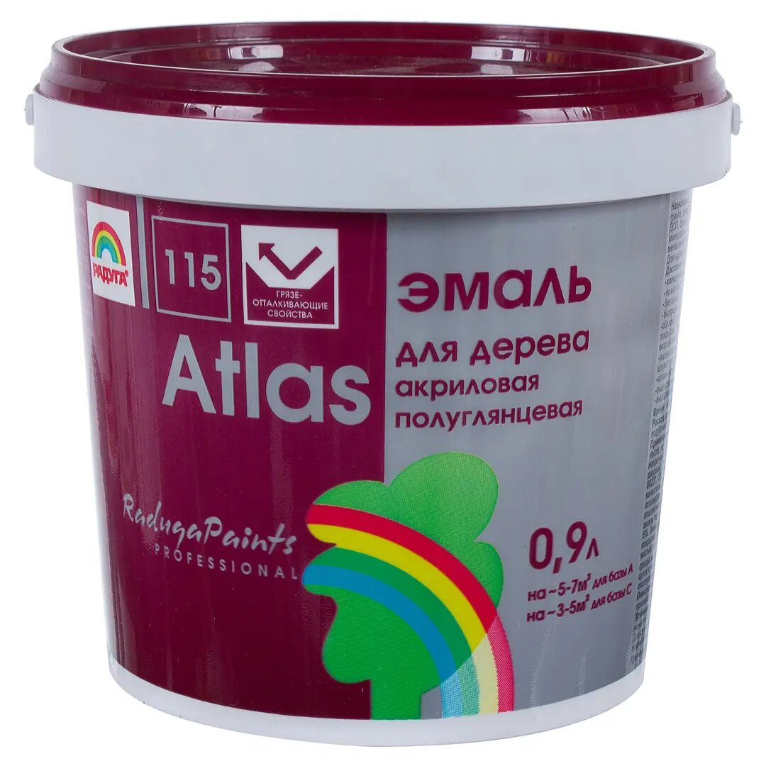Краска эмаль акриловая полуглянцевая Atlas Атлас вд-ак 115 цвет белый 0.9л база А без запаха информация: