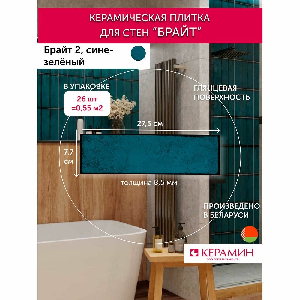 Плитка керамическая для стен Керамин Брайт 2 сине-зелёный 275х77,5 мм 26 шт (0,55 м2) информация: